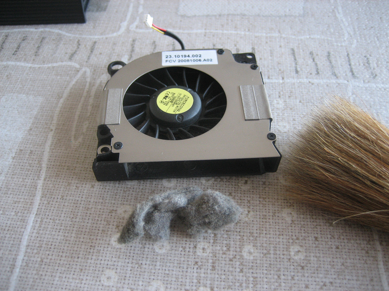 ファンのくちの部分に灰色フィルター(左写真の下のかたまり)のようなものが....あれ?フィルタ?それとも...