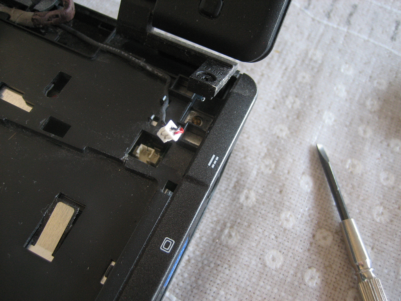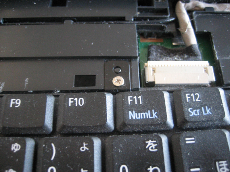 キーボード右上のコネクタとヒンジ部ネジ(左側も)外します。