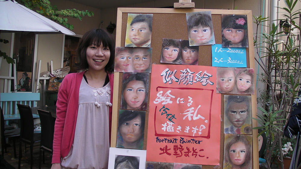 店にはきれいなお姉さんがいて似顔絵を描いてくれます