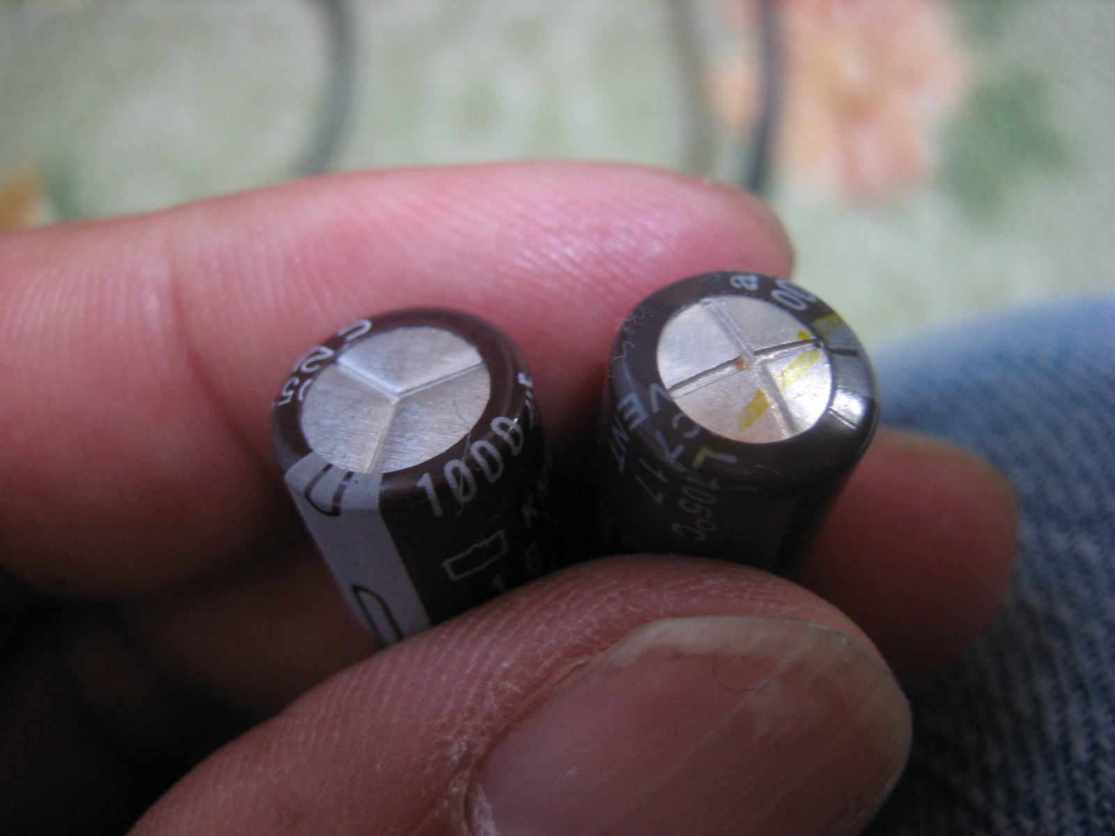 以前も同じ症状でコンデンサを交換したことがあるので、今回も同じと思い込みヤフオクで購入した6個のコンデンサーを交換。