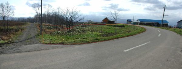 舗装道路沿いでパークゴルフ場と休耕地に挟まれた区画(坪数は忘れました)