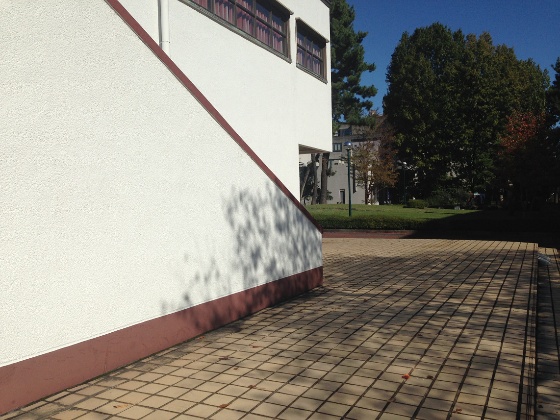 さて、上の場所から渡り廊下をくぐって奥へ行くとチッチの教室のある校舎です。
