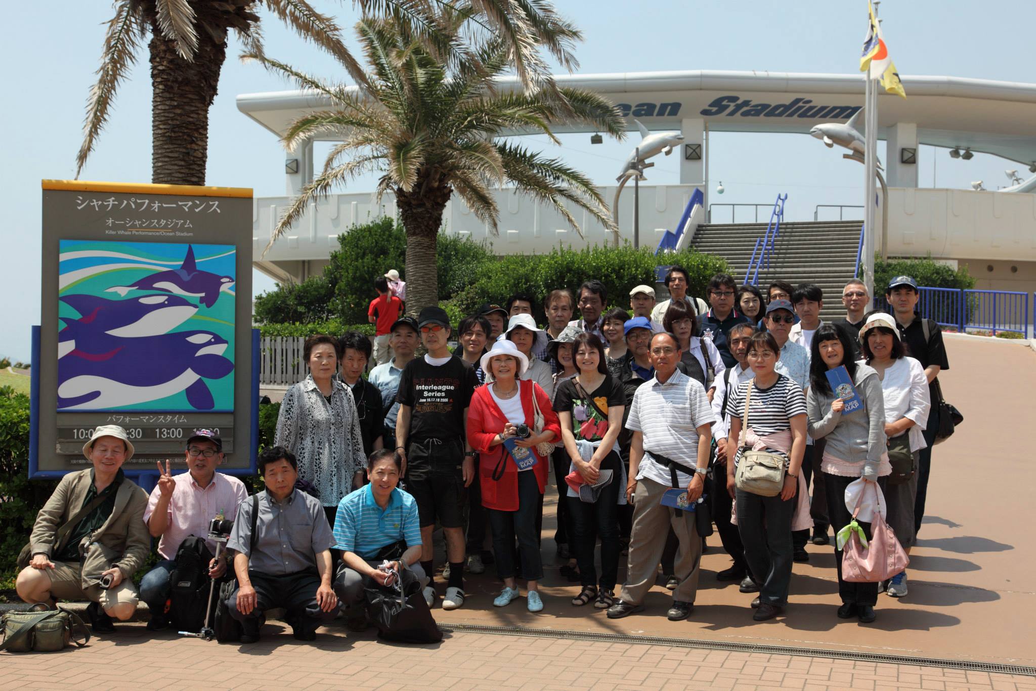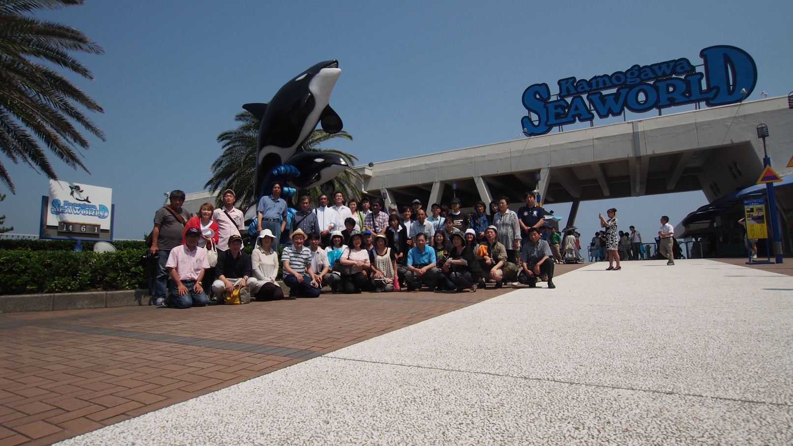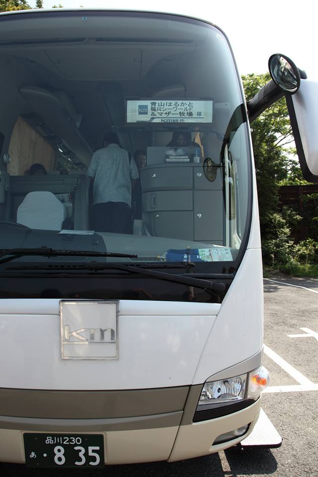 最後に鴨川シーワールドの駐車場でKMバスをバックにパチリ