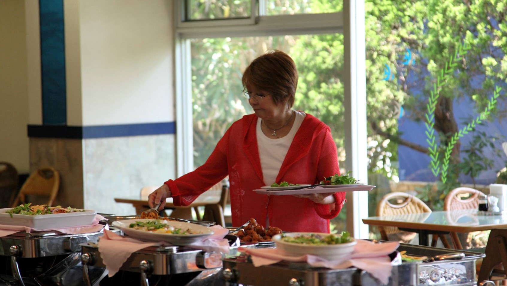 皆がご飯を食べていると、友紀さんがテーブルを回って参加者ひとりづつをかけていました。