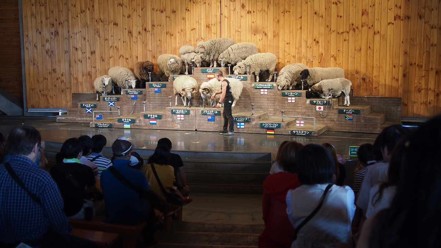 羊や山羊を目で動かす利口な牧羊犬には驚きで、続いてのシープショーは外国人のお兄さんのうしろで隣の羊の餌を食べる羊とお兄さんのバトルが楽しいショーでした。