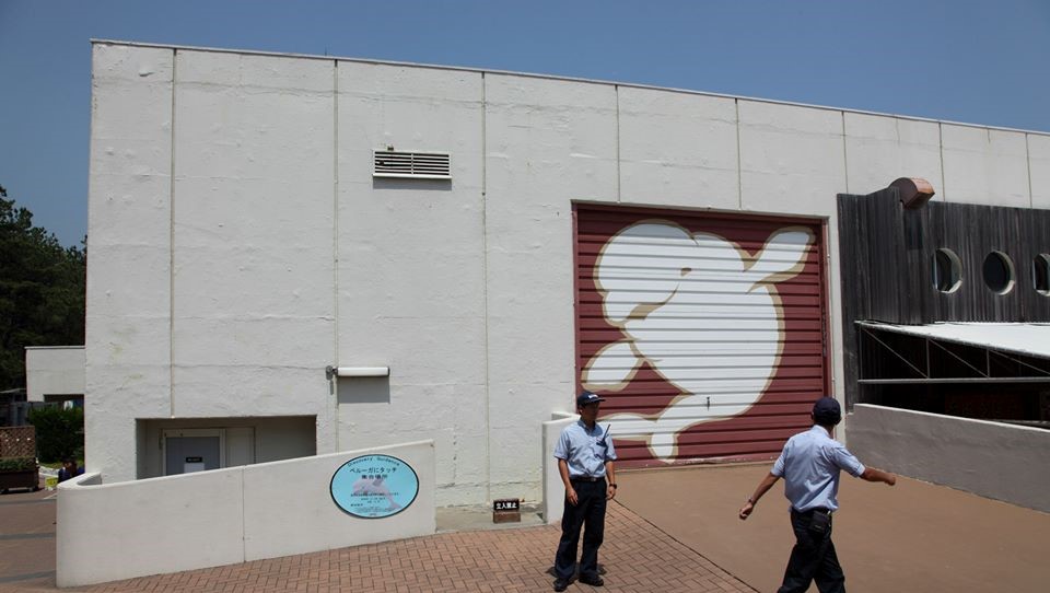 入口の塀をなくして、シロイルカの絵のシャッターを青くすれば当時と変わらない建物だということがわかりますね。