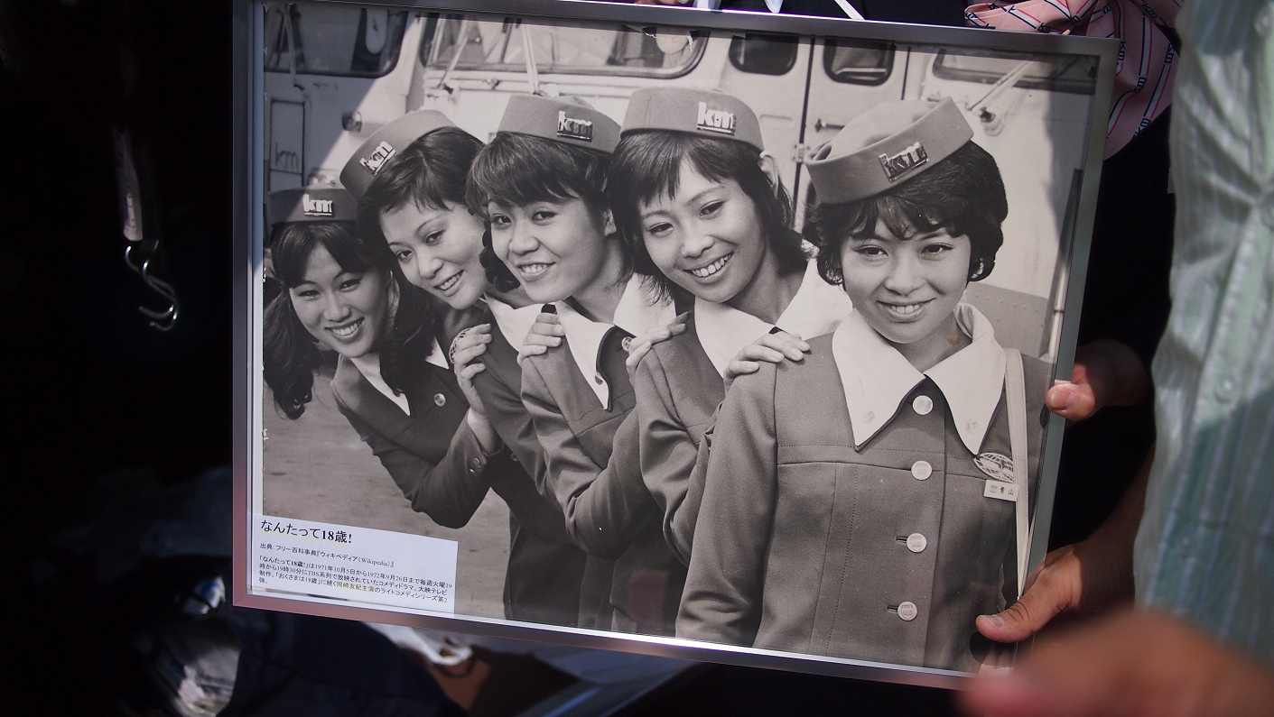 賞品はなんと友紀さんが自宅から連れてきたスヌーピーのぬいぐるみ、朝のバスで友紀さんが着たコスチューム、友紀さんが写っている日活映画のロービーカード、バスガイドの帽子でした。