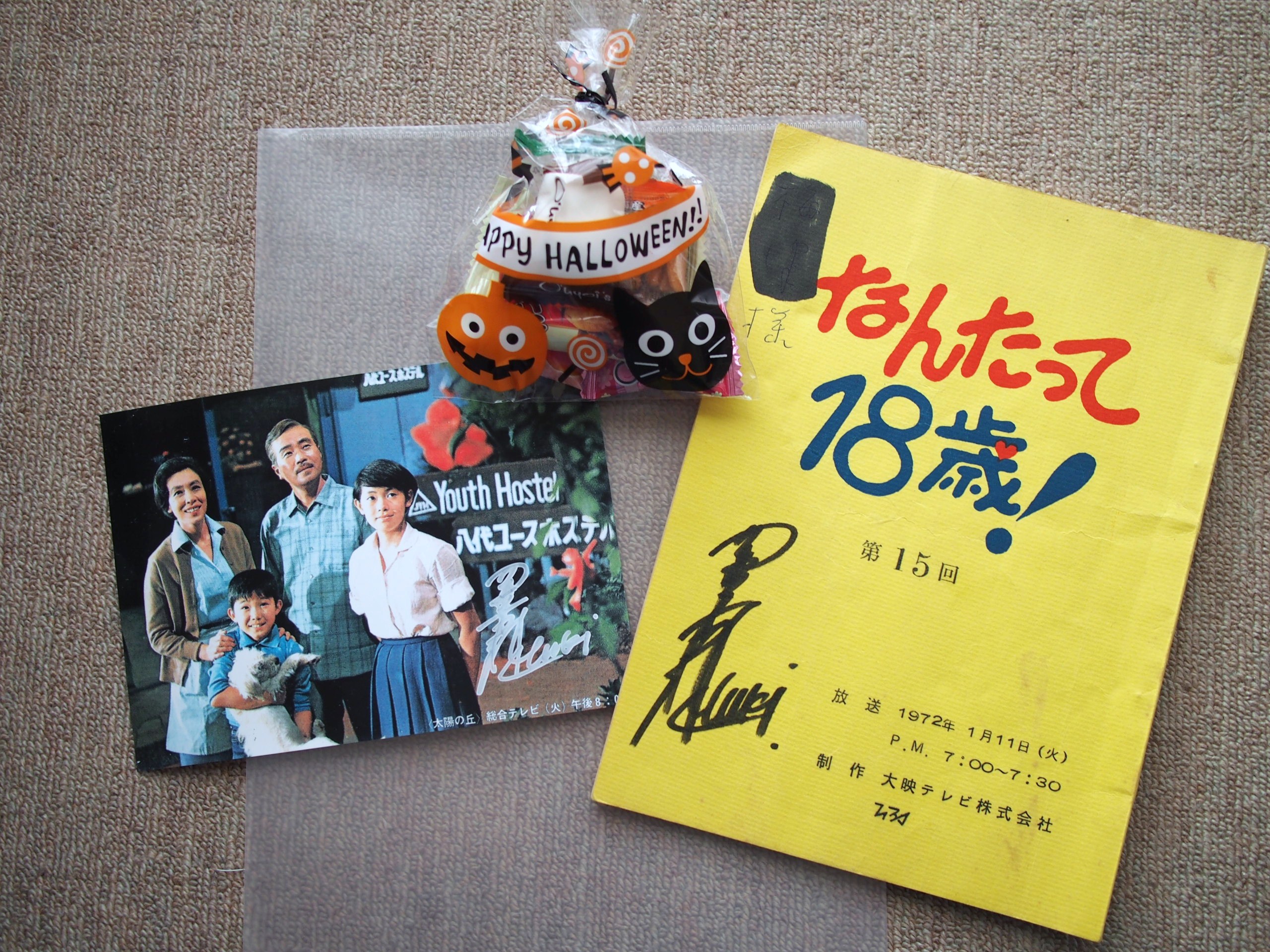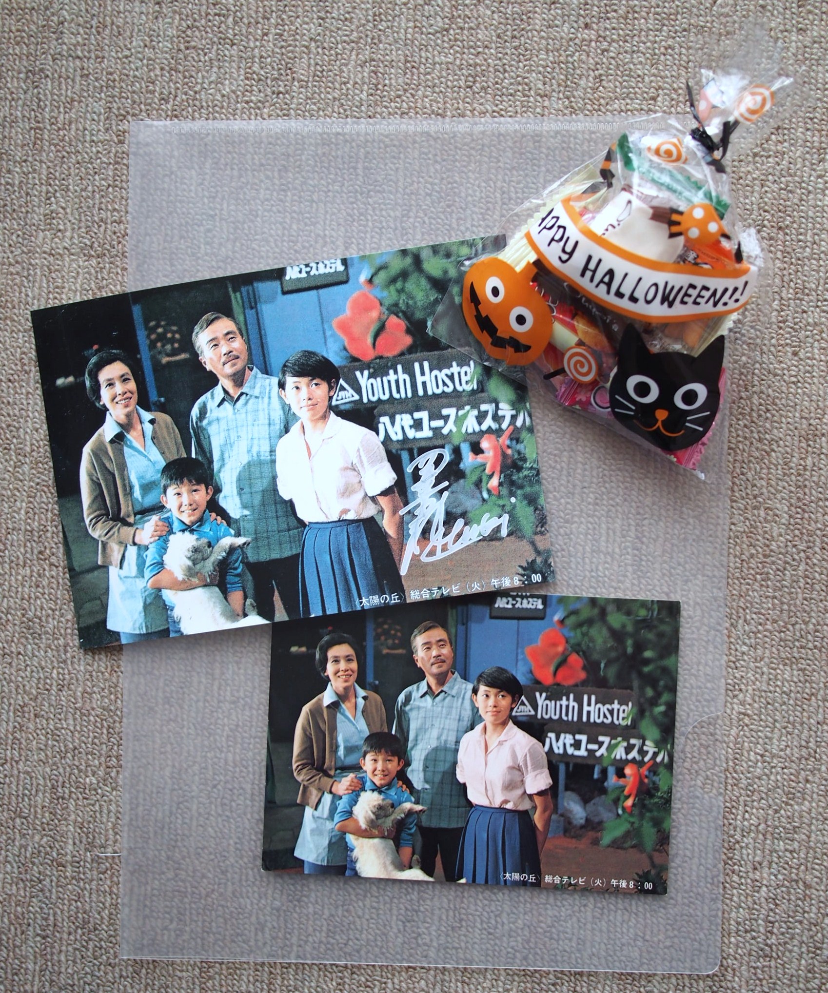 一番下の絵葉書が本物で、少し拡大写真にしたものに友紀さんのサインをもらいました。