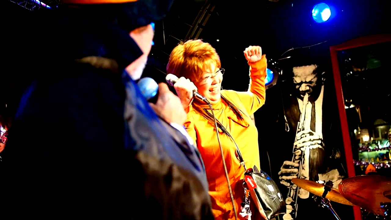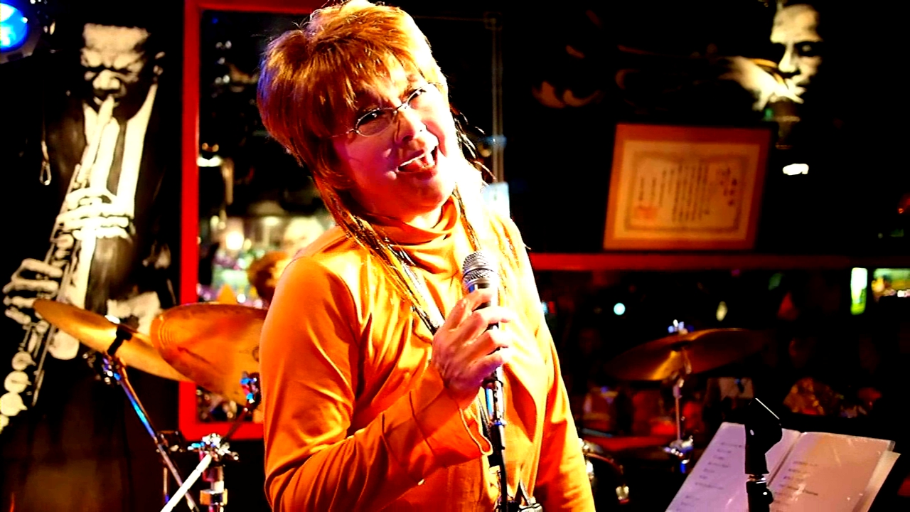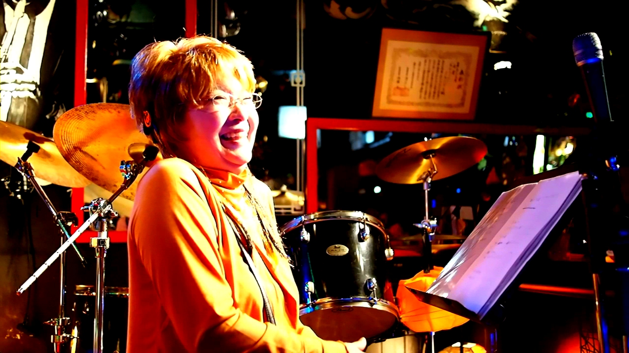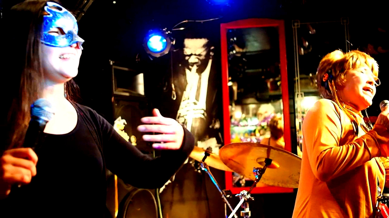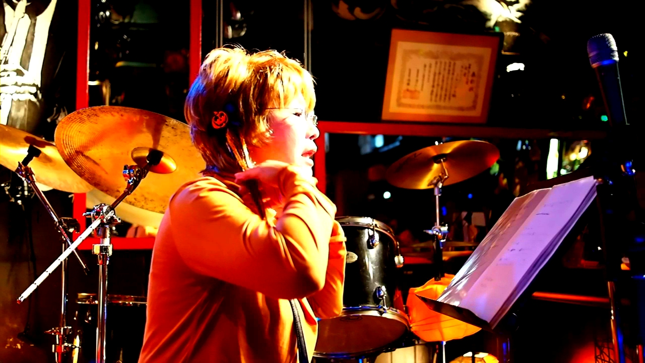 このジャズバーGANBAROUの表で友紀さんのアルバム写真撮影してます。
