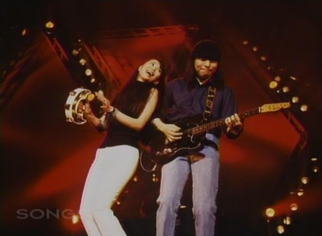 貴重な2000年ライブ映像ではバックバンドの中にノリノリのギターがいると思ったら、旦那の山下達郎だったんですね。