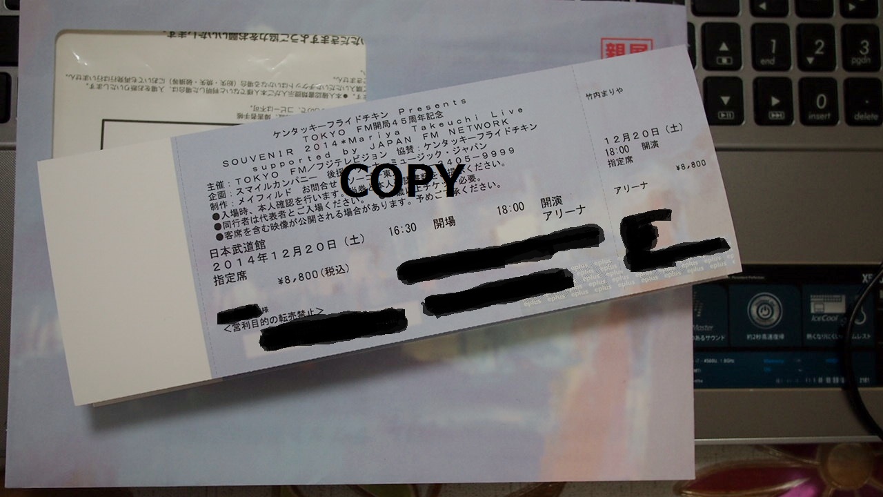 [2014/12/13] 竹内まりやさん 武道館チケットが届きました (No.889)