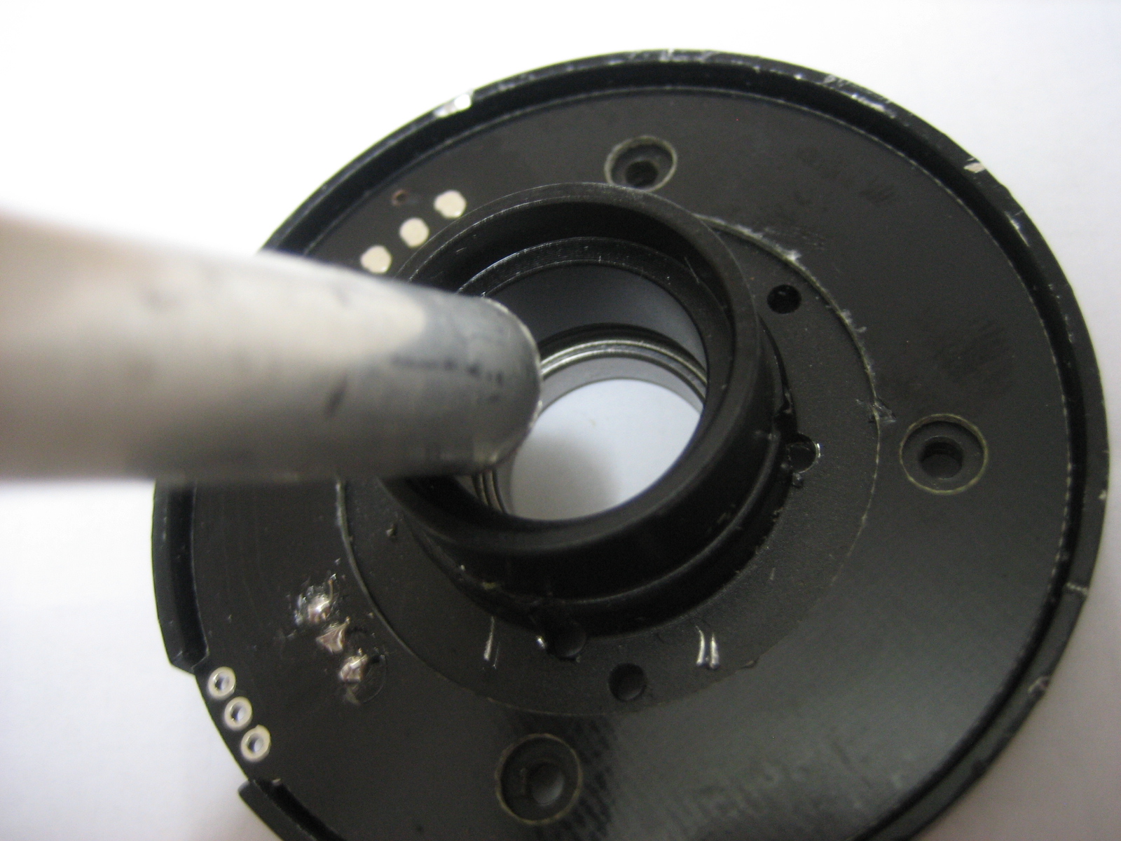 中空シャフトを押し出します。ハンマーでたたかないと抜けません。