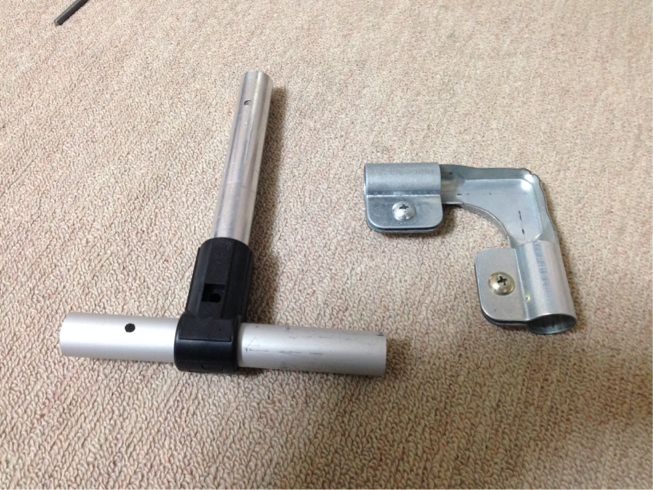 軽量化でアルミパイプ接続部品を変更しましたが、強度不足のため写真をよく見ると黒いプラスチック部品にねじが追加されてます(3月6日にアップした写真と見比べればわかります)