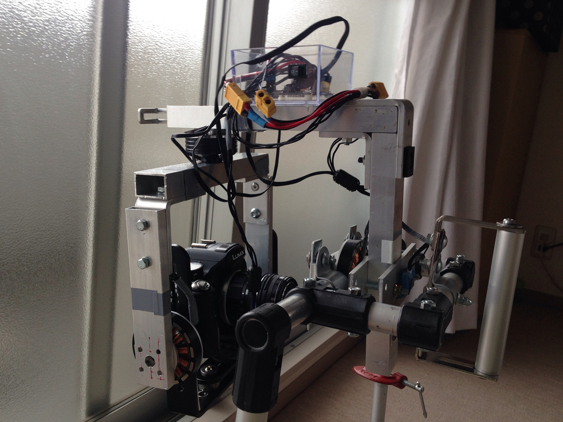 市販品をベースに剛性アップしたものですが、チルトするとカメラが斜めになります。