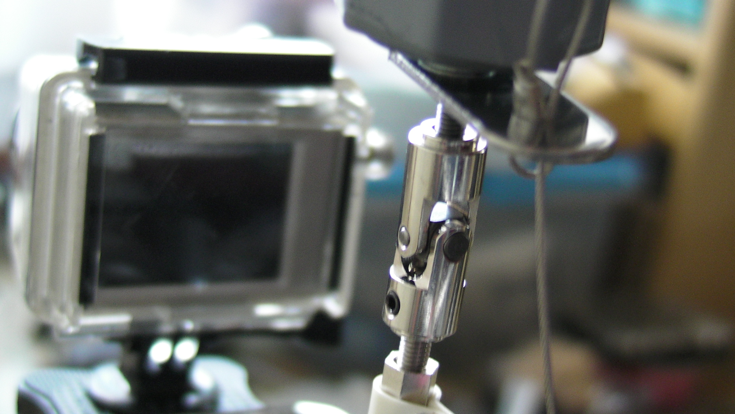 (下の写真ではユニバーサルジョイント右上でワイヤーを一度通した穴にあまったワイヤーをはめたのが原因)