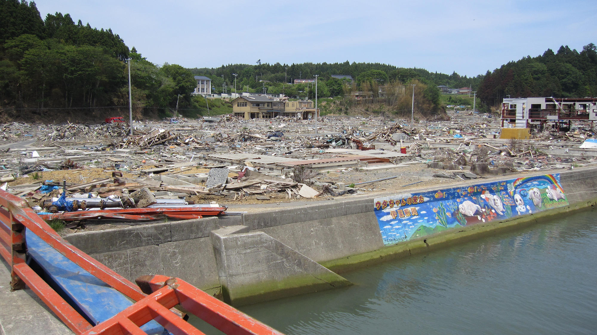 田んぼは表面のガレキは撤去してありましたが津波の土砂で埋まったままです。