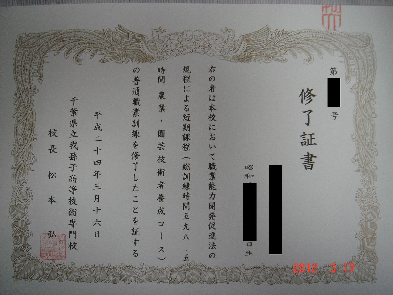 [2012/03/17] 職業訓練が修了しました (No.563)