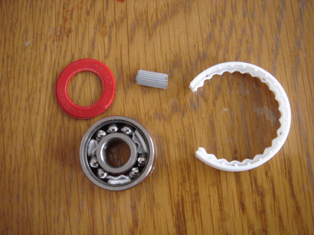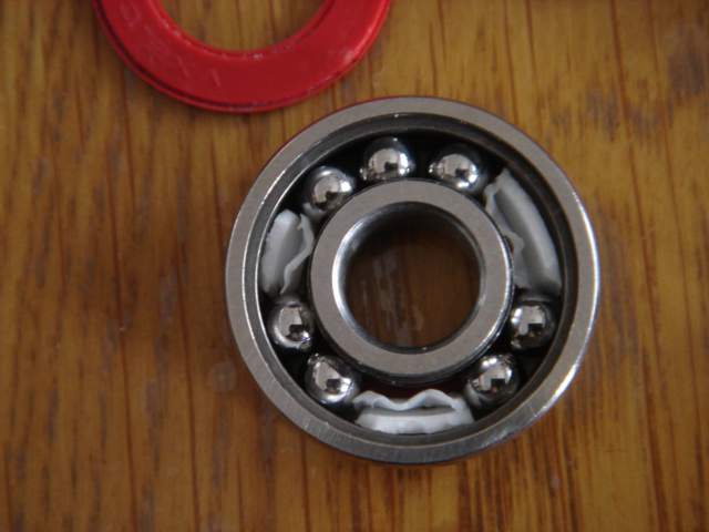 予想通り回転は鈍くなりましたが、使っているとこのパーツ、柔らかすぎてベアリングの中で動いてしまい、ベアリングの動きおかしくなります。