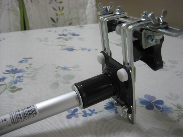 メインスレッドポールとテーブル脚はラッキーブレンカムヒンジ部のウツボでしっかり固定します。