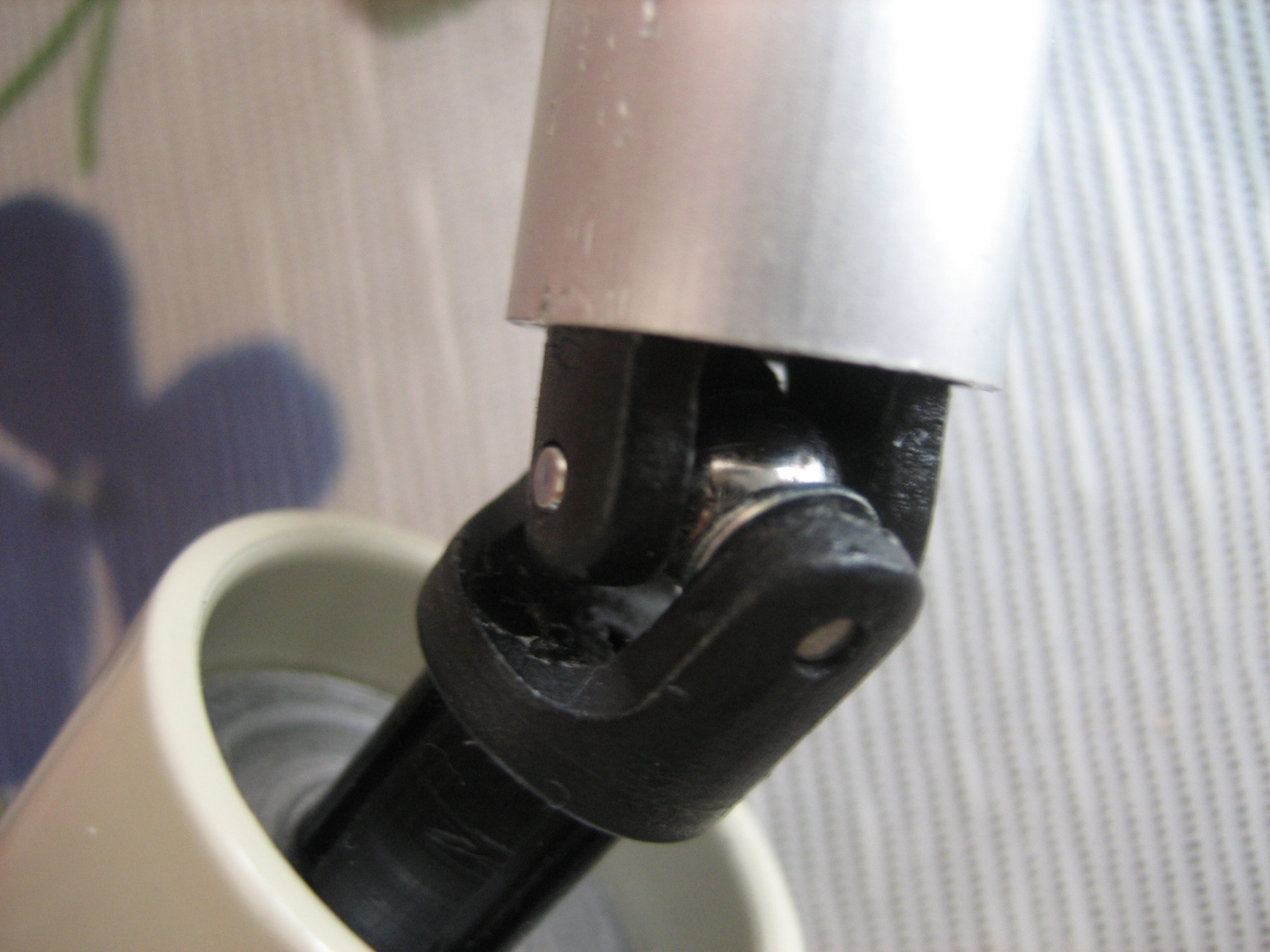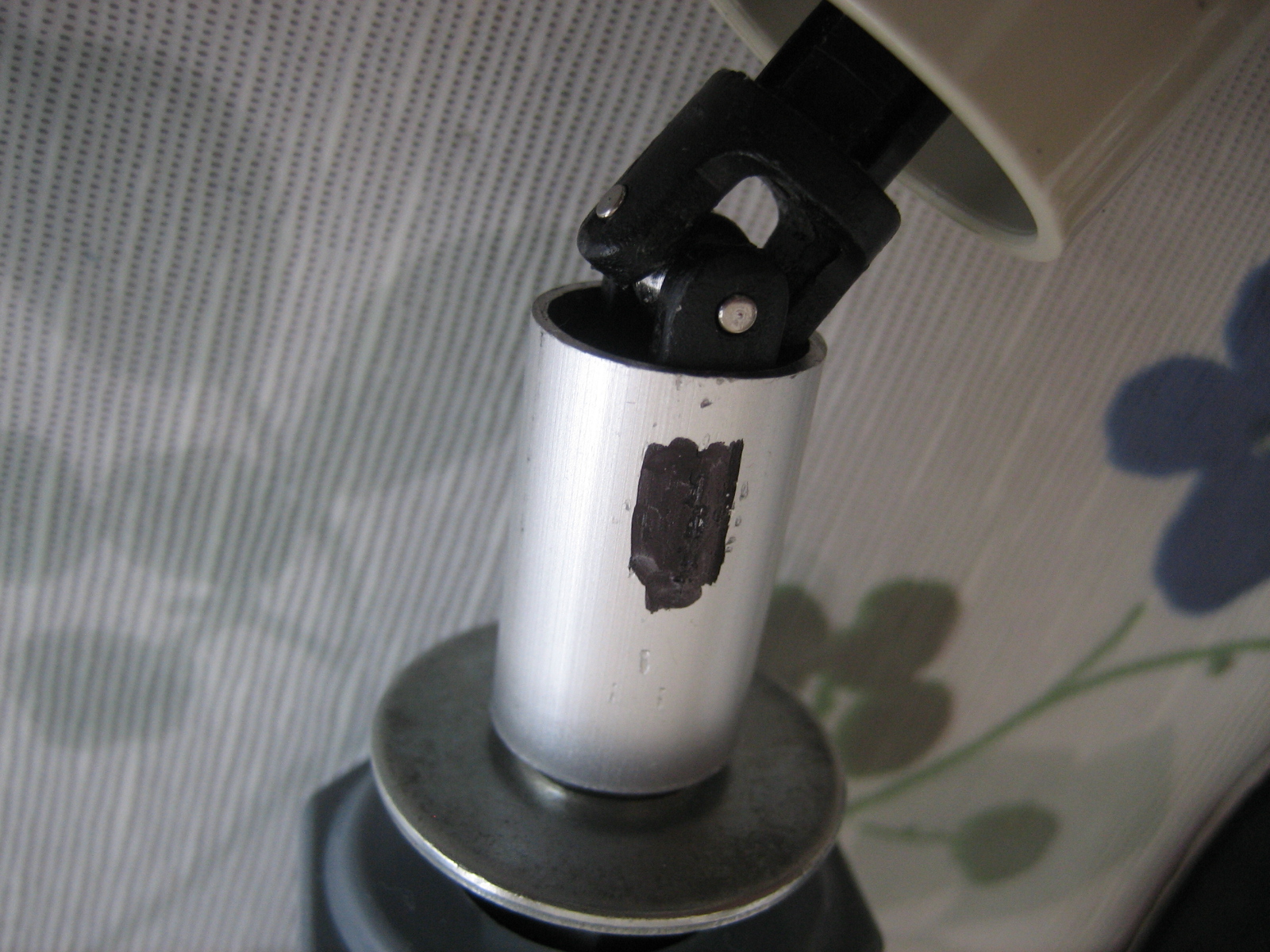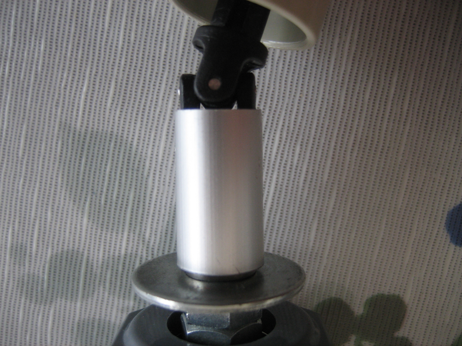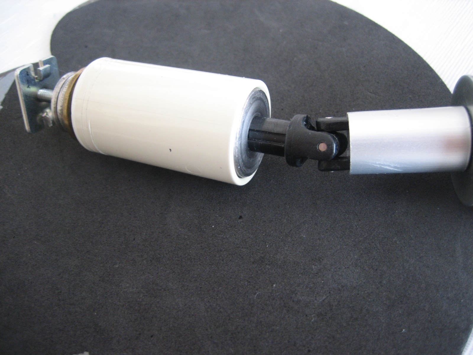 このユニバーサルジョイントはボールジョイント部が広がってガタツイているので、直径15mmアルミパイプをかぶせ、黒く塗った部分をペンチで押しつぶしてジョイント部のガタを解消