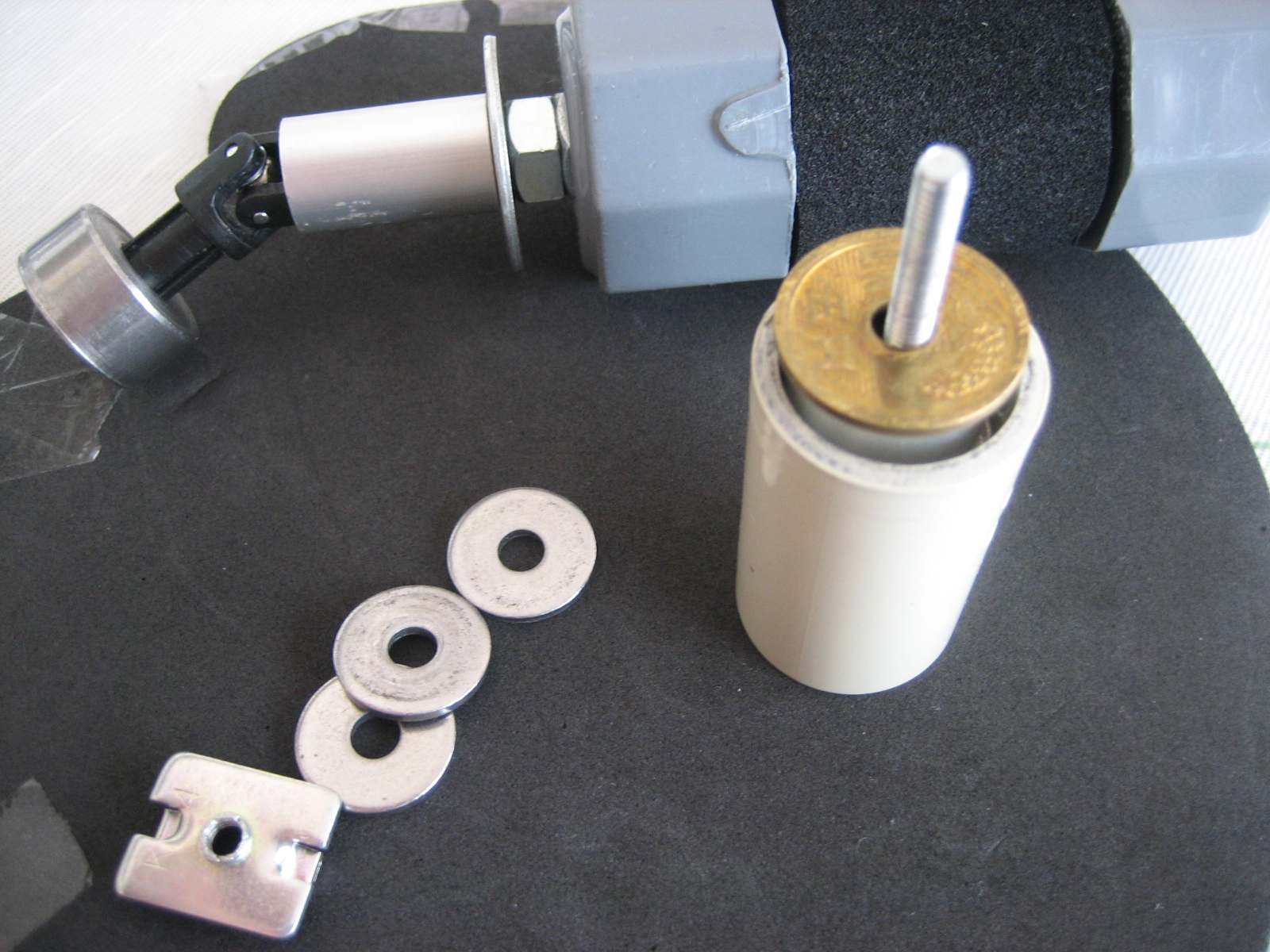 2)ドロップタイムは5円玉や厚ワッシャの枚数で調整(ドロップタイム調整ではいちいちギンバルを外す必要があるけど、これだとしっかり固定できます。)