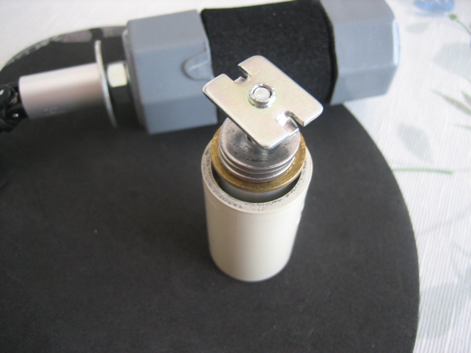 短く切ったアルミパイプ(直径20mm)載せ、