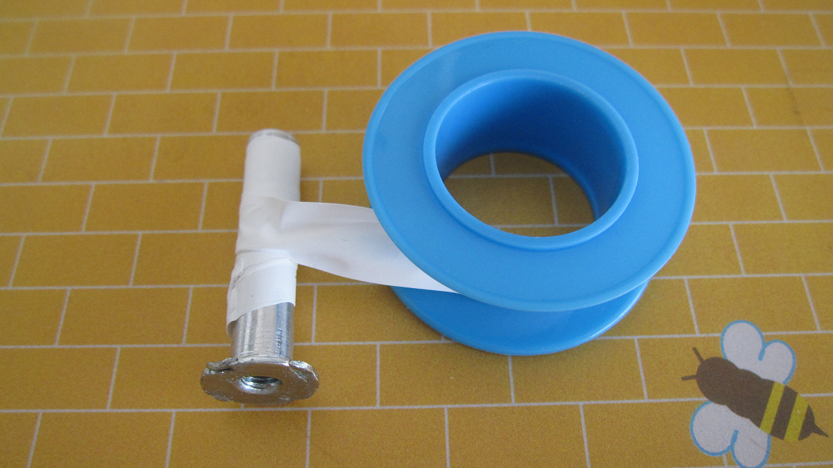 このアルミパイプでは少し緩いので、水道用水漏れ防止テープをアルミパイプに巻きつけます。
