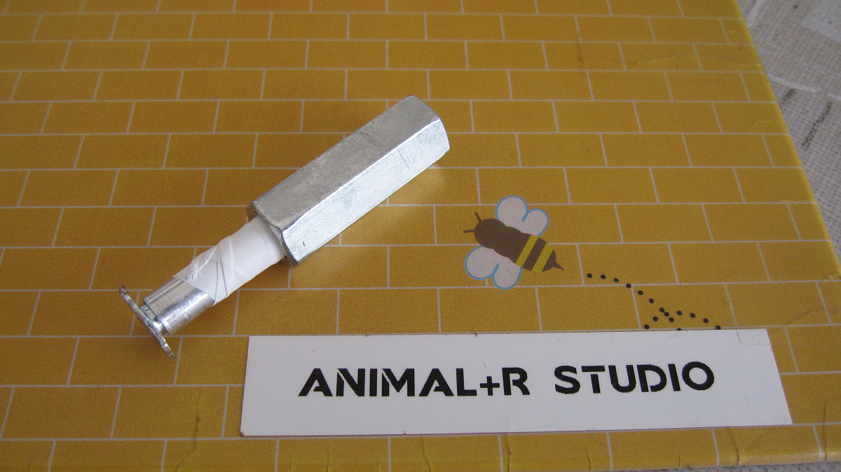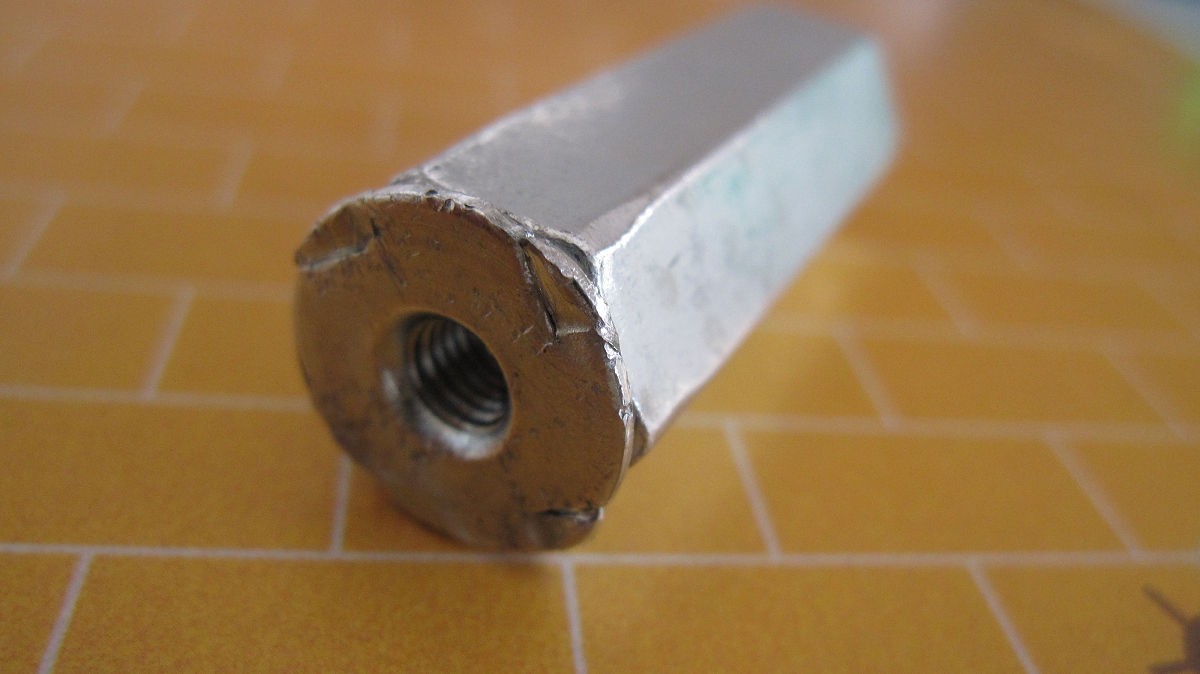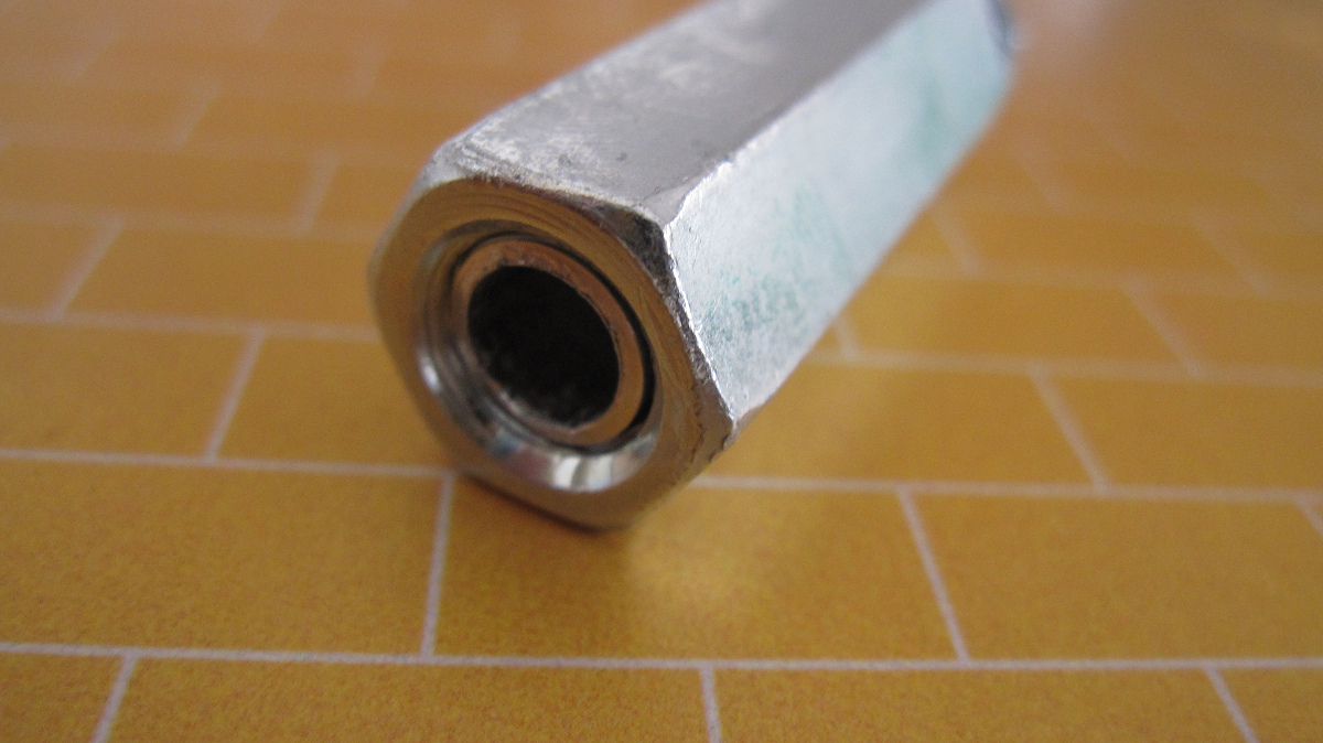 直径7mm、厚さ1mmのアルミパイプを大きなナットに通して、爪付きナットをアルミパイプに叩き込む。