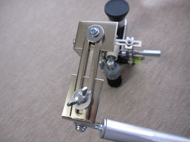 撮影時の状態から蝶ネジを緩め、バランス部(アーム)下部を溝状になった金具に沿ってスライドさせます。