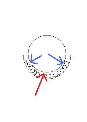 底(赤い矢印)は全くクレーターになっていませんが、よく見るとネジ穴付きステンレスボールのサイド(青い矢印)がクレーターになってなっています。