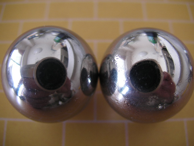 ご覧の通り右のステンレスボールにはかなりの歪があります。