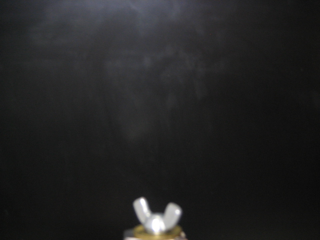 そこで、次にカメラを少しずつ前方へ移動したら、ixy60の場合はこの位置で少し蝶ねじの頭が写りこんでいました。
