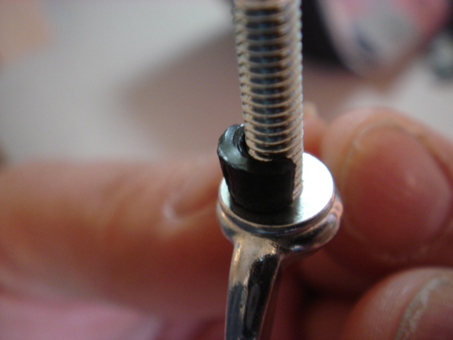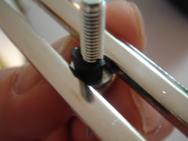 アルミスペーサー、小さな輪ゴム、釣りの重りに使う鉛のテープ、半田、ビーズなどなど、手軽にはめる小さな輪はどこに??
