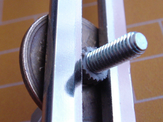この部分はM4蝶ねじとミニ金具のみぞに約1mm(写真のつまようじ